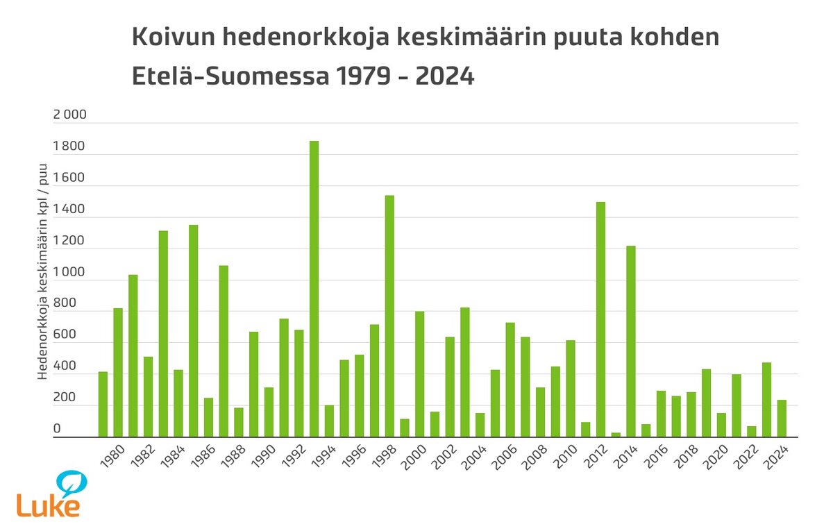 Hedenorkkolaskennan perusteella koivun kukinta tulee olemaan allergikkojen kannalta selvästi viimevuotista helpompi, joskaan ei aivan pölytön. Norkkojen keskimääräinen lukumäärä Etelä-Suomen koivuissa on vain noin puolet viime kevääseen verrattuna. Kukinnan määrään ei ole ennustettavissa merkittäviä alueellisia eroja, mutta havaintopaikkojen välillä esiintyy kasvupaikan olosuhteista johtuvaa vaihtelua kautta Suomen.