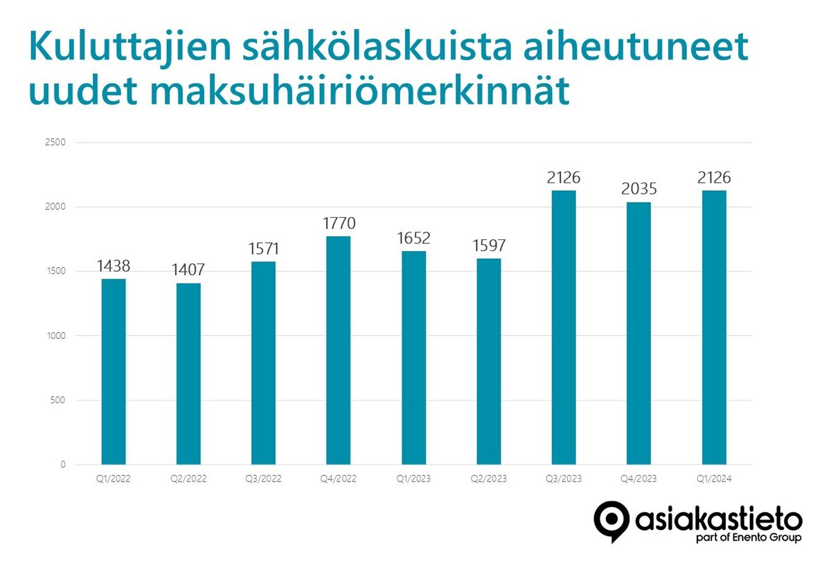 – Olemme tutkineet tätä sähkön hintaan ja kotitalouksien maksuvaikeuksiin liittyvää ilmiötä vuoden 2022 alusta lähtien. Viime vuoden jälkipuoliskolla sähkölaskuista aiheutuneiden maksuhäiriöiden määrä alkoi selvästi kasvaa. Tuoreimmat luvut osoittavat, että näiden maksuhäiriöiden määrä on valitettavasti vakiintumassa korkealle tasolle, kertoo viestintäpäällikkö Ville Kauppi Asiakastiedosta tiedotteessa.