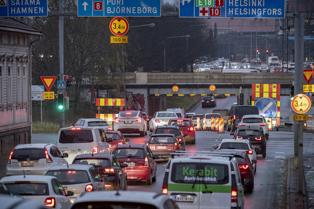 Jos henkilöauto ajaa epähuomiossa raskaan liikenteen kaistalle, noudatetaan raskaan liikenteen liikennevaloja ja palataan niiden mukaisesti takaisin Saaristotielle.