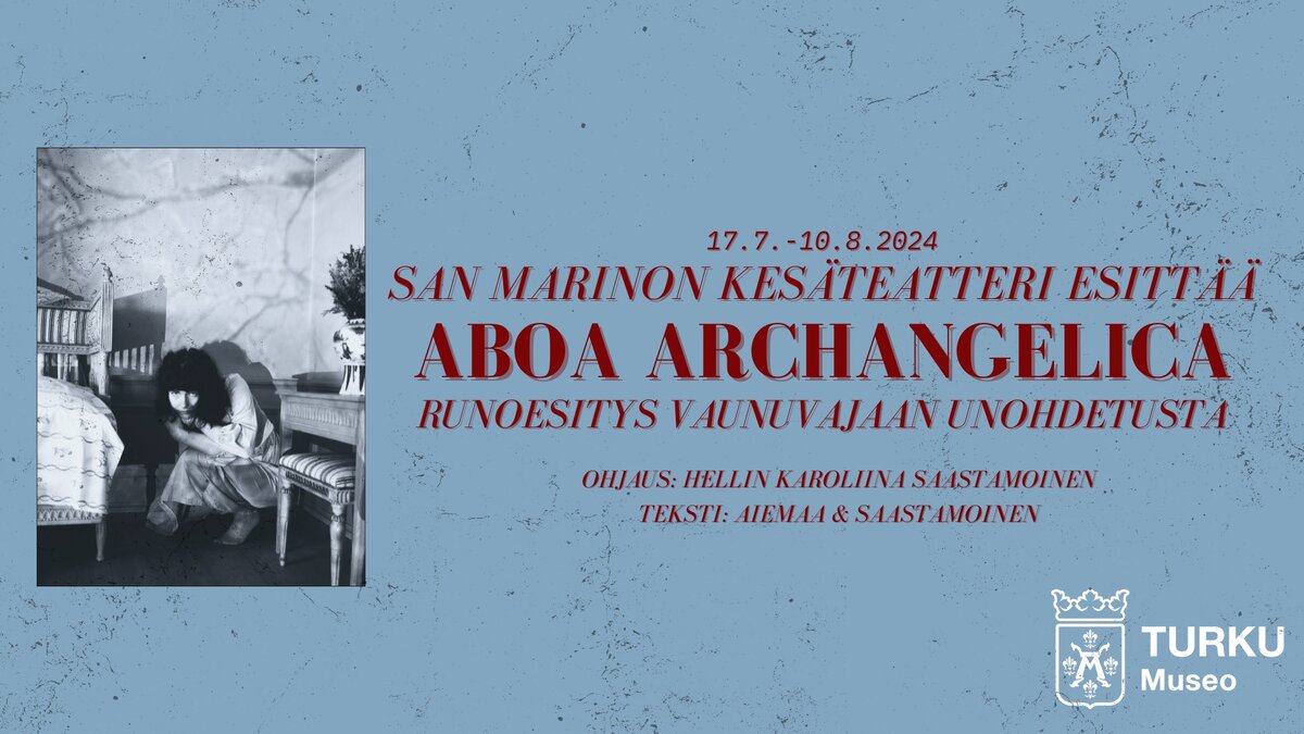 – San Marinon kesäteatteri elävöittää historiallista Turkua, tuoden elävää kaupunkikulttuuria Qwenselin talon sisäpihaan. Tämän kesän esitys Aboa Archangelica on imenyt rutkasti inspiraatiota museon kokoelmasta, tuoden Qwenselin talon palvelijoiden mahdollisen menneisyyden eloon nykypäivän yleisön eteen. Nykypäivän keskustelua työstä, valtasuhteista ja sukupuolesta ei voi käydä ottamatta huomioon historiallista taustaa, ja ainakin itselleni erityisesti paikallishistoria on ollut tuntemattomampi aihe. Vaikka esityksen tarina on kuvitteellinen ja sisältää paljon fantasiankin puolelle lipsuvia elementtejä, on kaiken pohjalla kuitenkin tekemämme taustatyö menneiden aikakausien työläisiä koskien, teoksen ohjaaja ja käsikirjoittaja Hellin Karoliina Saastamoinen kertoo.