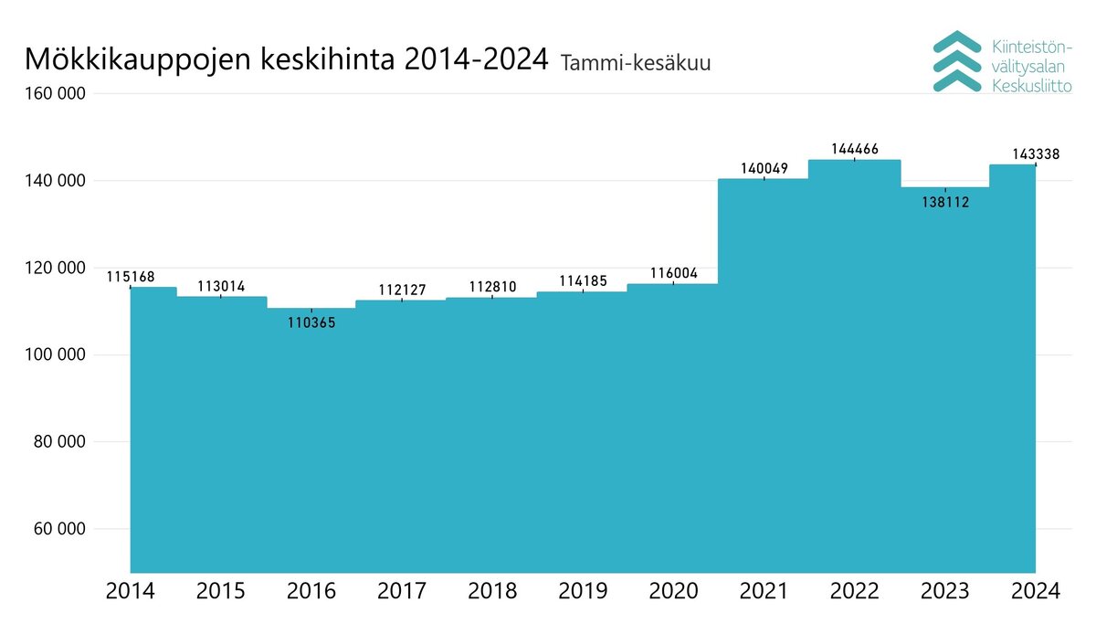 Hintataso loma-asuntojen kaupoissa on tammi–kesäkuun aikana ollut tilastollisesti varsin korkea: keskimääräinen hinta oli 143 000 euroa ja mediaanihinta 104 000 euroa. Tätä korkeampia hintoja kuluneen kymmenen vuoden aikana on ollut tammi–kesäkuun ajanjaksolla vain vuonna 2022, jolloin keskihinta oli 144 000 euroa sekä vuonna 2021, jolloin mediaanihinta nousi 105 000 euroon.