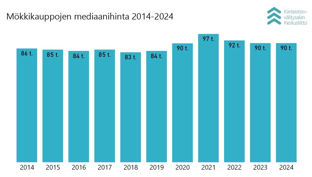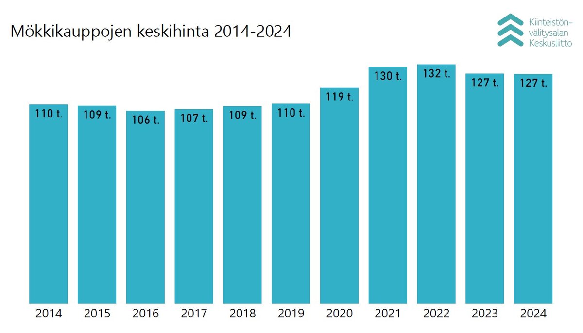 Mökkien hinnat ovat keskiarvoisesti pysyneet suurin piirtein samalla tasolla.