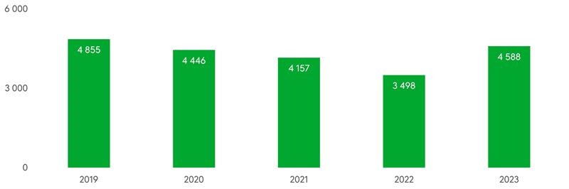 Työmatkatapaturmien määrä vähentyi selvästi koronavuosina, kun etätyöskentely lisääntyi ja siirtymiset työpaikoille vähentyivät. Tapaturmien määrä kääntyi viime vuonna jälleen selvään kasvuun. Välimaan mukaan tähän syynä todennäköisesti työsuhdepyörien yleistyminen yrityksissä. Pyöräliiton mukaan työsuhdepyörien määrä on ylittänyt jo 80000 kappaletta, ja erityisesti sähköavusteiset polkupyörät ovat lisääntyneet.