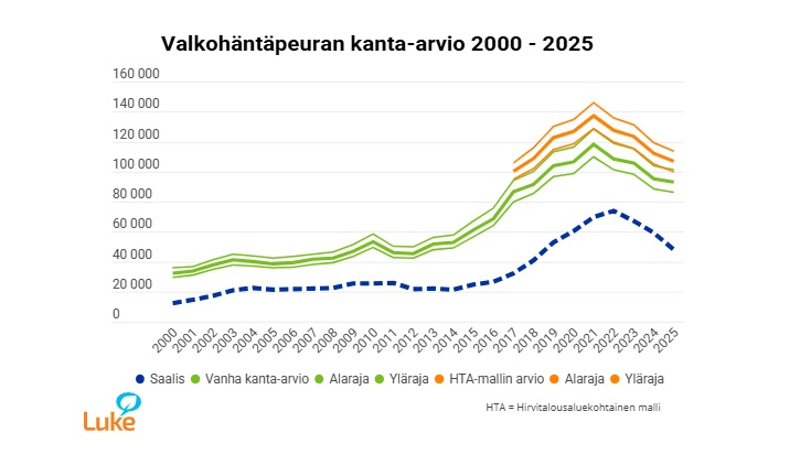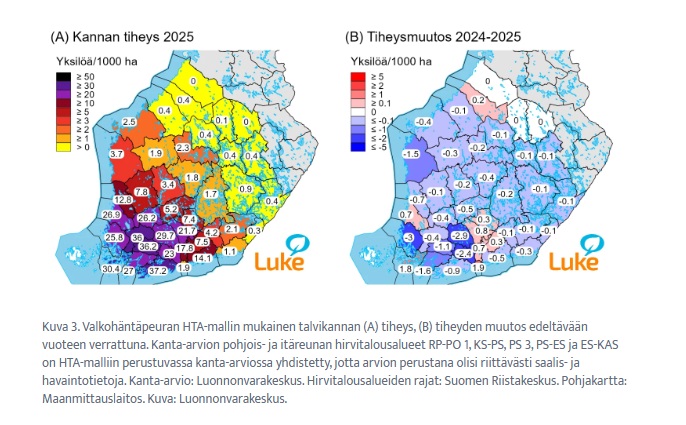 Tulevan syksyn metsästettävän kannan kooksi ennustetaan talvikannan koon ja rakenteen perusteella 143 000 yksilöä (95 % todennäköisyysväli 124 000–163 000 yksilöä). Kannan säilyttäminen ennallaan edellyttäisi 36 000 yksilön saalista ja 90–95 prosentin todennäköisyydellä tapahtuva leikkaaminen 52 000–57 000 yksilön saalismäärää. Päättyneen metsästyskauden saalis oli noin 48 000 yksilöä.