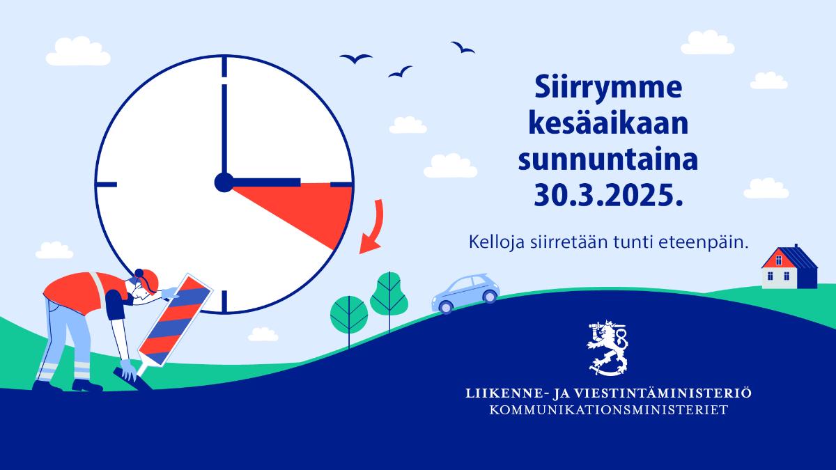 Talvi- eli normaaliaika päättyy ja kesäaikaan siirrytään lauantain ja sunnuntain välisenä yönä. Viisaria siirretään tunti eteenpäin tulevana sunnuntaina 30. maaliskuuta aamuyöllä kello 3.