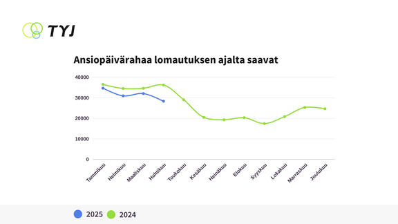 Huhtikuussa lasku selittyy valtaosin lomautusten määrän vähenemisellä. Ansiopäivärahaa maksettiin huhtikuussa lomautuksen ajalta 28 000 henkilölle, mikä on 22 prosenttia viime vuoden huhtikuuta vähemmän.