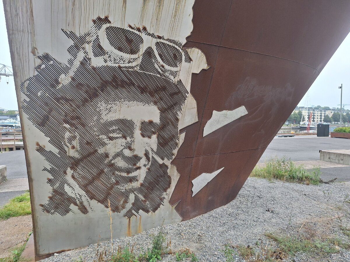 Ulkopinnalla olevat kuvat ovat vanhoja valokuvia satama- ja telakkatyöläisistä. Kasvokuvat ovat ruostumatonta terästä, itse laivan keula on ruostutettu. Taiteilijan mukaan teoksen inspiraationa on toiminut Tapio Rautavaaran kappale Laivat puuta, miehet rautaa.