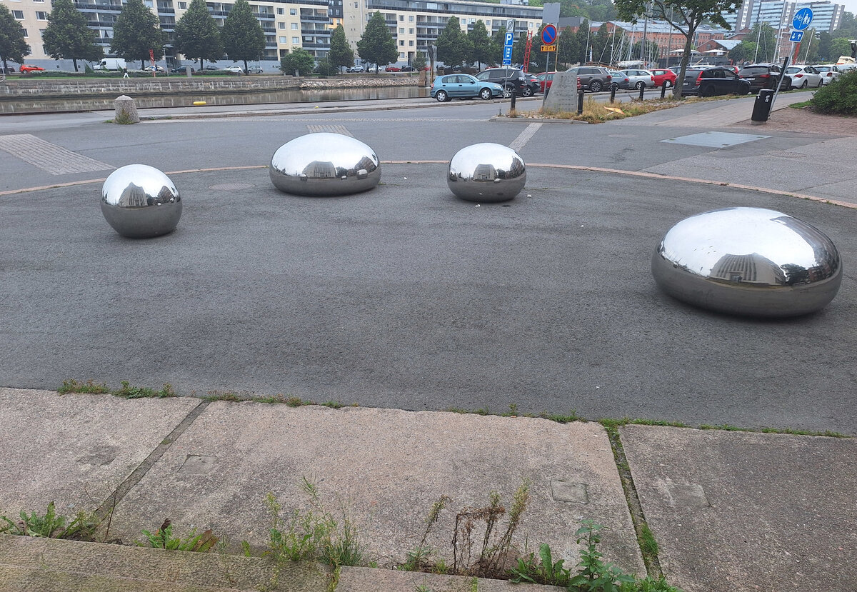 Itäisen Rantakadun varrella Valkoisen talon edustalla sijaitsee Merja Pitkäsen veistos Helmet, joka koostuu neljästä vesipisarasta, joiden teräspinnasta heijastuu jokirannan kaupunkimaisemaa.