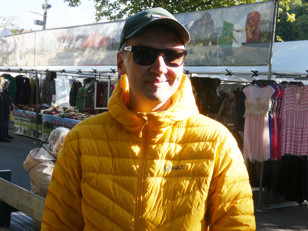 – Olemme lasteni kanssa käyneet täällä jo kolme kertaa ja käyneet ihmettelemässä. Saatamme ostaa jotain syötävää heille. Lasten vuoksi olen täällä, ei tämä itselleni niin iso juttu ole. Hinnat ovat aika korkeita, kuten muuallakin nykyään. Tuskin ostamme täältä mitään ruokaa, kertoo Juuso Haranto, 36.