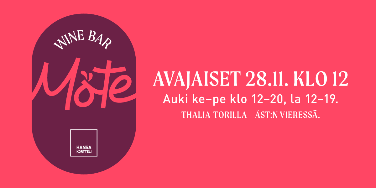 Hansakorttelin Thaliatorille avautuu perjantaina 28. marraskuuta pop up -viinibaari Möte. Jouluinen kohtaamispaikka palvelee keskiviikosta lauantaihin joulunalusviikolle asti. Toteutus syntyy Hansakorttelin ja kesäisen Kirkkopuiston Terassin yhteistyönä.