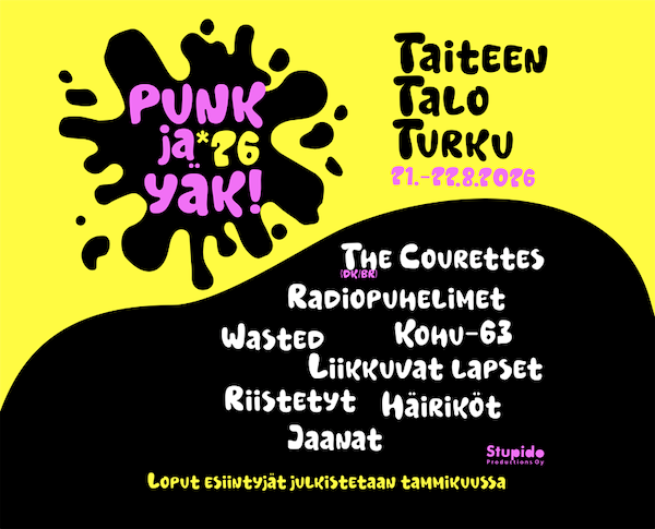 Vuonna 2023 aloittanut Punk ja Yäk -festivaali järjestetään myös ensi kesänä Taiteen talon sisäpihalla. Festarin ohjelma dokumentoi punkkia pitkältä aikajaksolta ja erilaisista näkökulmista.