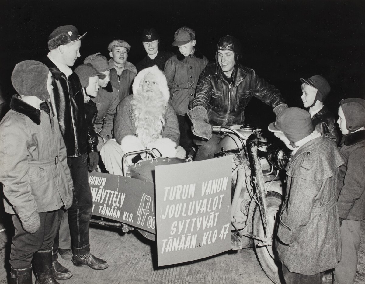 Jouluisen näyteikkunan, joulunäyttelyn, avaaminen ja jouluvalojen syttyminen olivat myös 18. marraskuuta 1956 yleisötapahtuma, jota mainosti itse joulupukki moottoripyörän sivuvaunussa. Vaunun reunoihin oli kiinnitetty mainoskyltit tapahtumasta. Lapset olivat innolla tapaamassa joulupukkia.