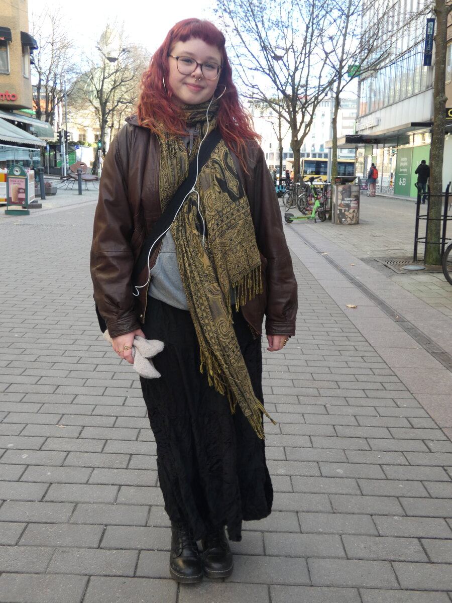 – Ostan suurimman osan vaatteistani kirpputoreilta ja pidän vanhemmasta pukeutumistyylistä. Tärkeintä minulle on, että vaatteet ovat mukavia päällä ja ettei niitä tarvitse ostaa uutena. Minulla on aika laaja maku pukeutumisen suhteen, enkä tykkää lokeroida itseäni vain yhteen tyyliin; tärkeintä on löytää inspiraatiota eri puolilta, sanoo Isabel Tynys, 21.