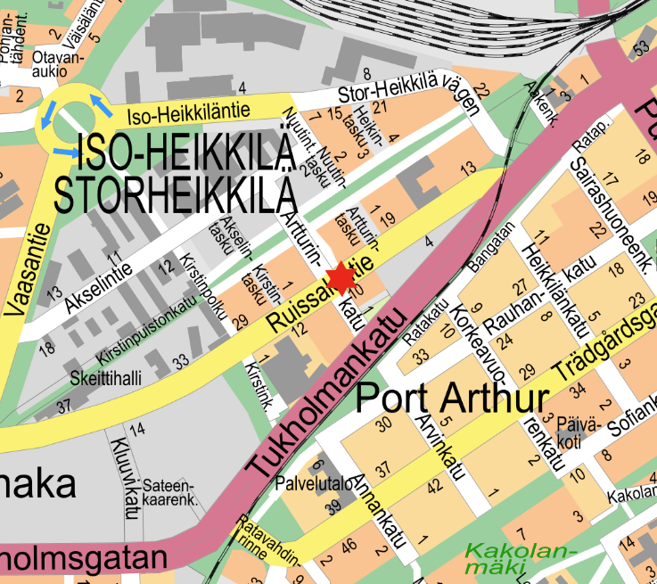 Kaukolämpötyötä tehdään Ruissalontiellä Artturinkadun risteyksen kohdalla 4.–23. joulukuuta. Yksi ajokaista on pois käytöstä.