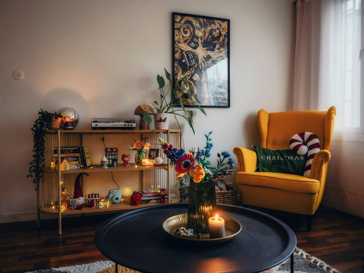– Yleensä kaikki värikkäät ja söpöt asiat vetävät puoleensa. Alunperin sisustukseni päävärit olivat vihreä ja vaaleanpunainen, mutta nykyään etsin myös muita värejä ja ajattelen, että värit piristävät, Sappinen sanoo.