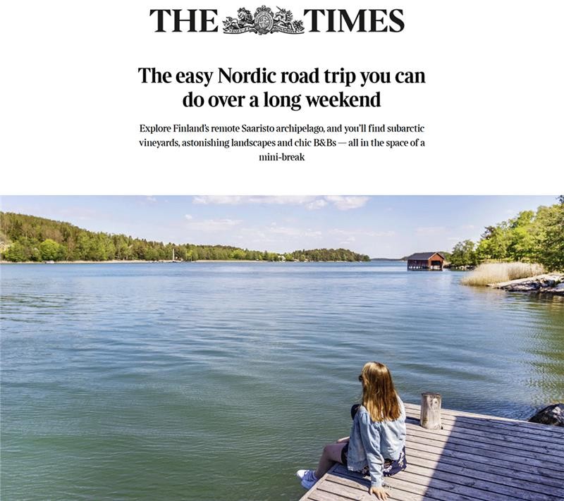 The Times on julkaissut laajan saaristoa käsittelevän artikkelin otsikolla The easy Nordic road trip you can do over a long weekend eli helppo pohjoismainen road trip -kohde, jonka voit kokea pitkän viikonlopun aikana. Juttu julkaistiin viime viikonloppuna sekä Timesin printtilehdessä, jonka levikki on lähes 600 000, että sen verkkosivustolla, joka tavoittaa 31 miljoonaa kuukausittaista verkkokävijää.