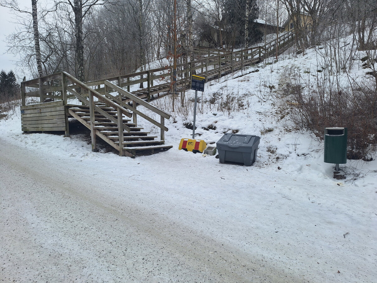 Lähin pysäkki: Suntiontie 1647. Kävele Kuuvuoren kentälle ja jatka kentän viertä Kuuvuoren juurelle. Kohde on portaiden alapäässä.